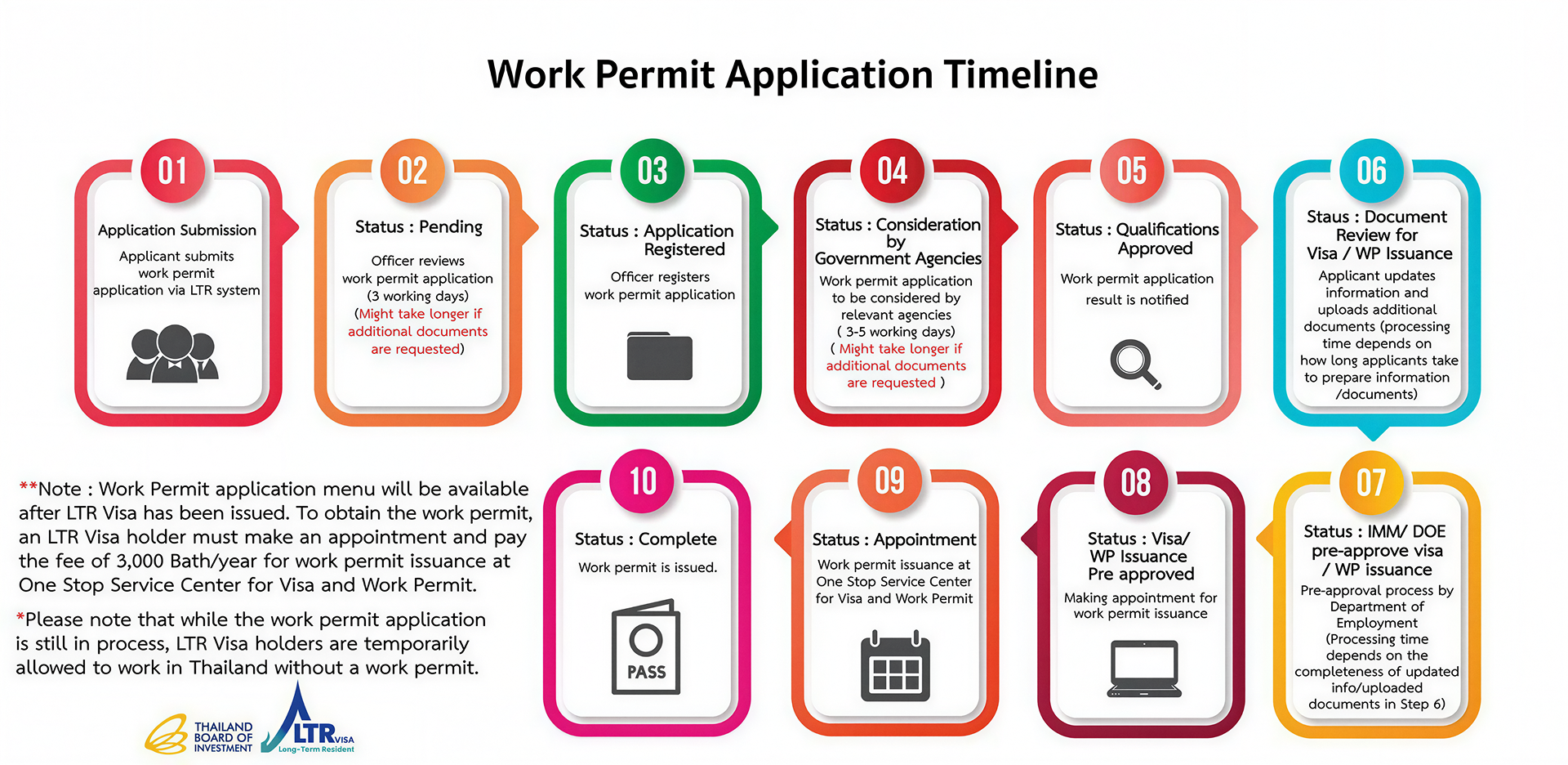 1. While the digital work permit request is still in process, LTR Visa holders are temporarily allowed to work in Thailand without the digital work permit.